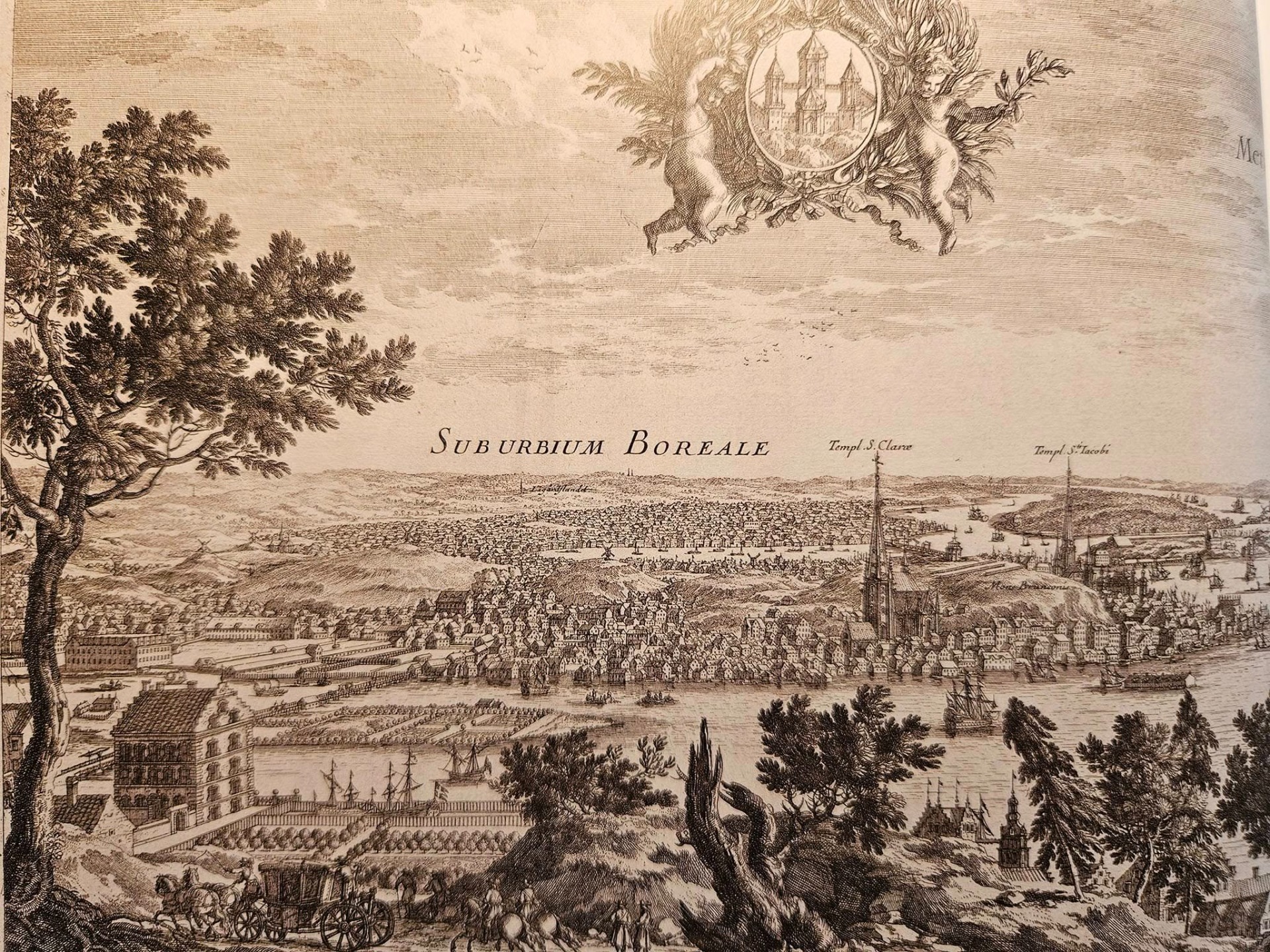 Norrmalm från Kungsholmen 1660-talet.Till vänster ses bron som fortsätter i Gamla Brogatan, där hovspråkmästare Bertram Pourel hade sin gård.Nere till vänster, första stenhuset som byggts på Kungsholmen grevinnan Christina Brahes malmgård.